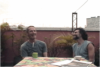SP: Que a sexualidade é muito mais relaxada aqui do que na América do Norte. Mas, eu acho que essa questão deve ser respondida por cada indivíduo. E talvez em cada dança. Talvez para 99% das pessoas com quem você dance seja apenas pesquisa de movimento, e então com a pessoa seguinte de repente há intimidade e sexualidade. Pode acontecer... Porque com o CI seria diferente? Na América do Norte é ainda uma grande questão. Por alguma razão eles pensam que a resposta virá de fora, sabe? Isso é CI, isto é sexualidade. Mas está dentro de cada pessoa. É esse desejo de polarizar, de colocar as coisas bem claras, preto no branco. Especialmente quando se trata do corpo, me parece que as coisas têm mais de um uso. Cada estrutura pode ser usada de diferentes maneiras.